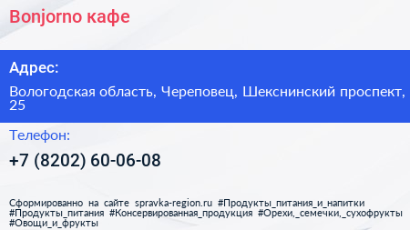 Bonjorno, кафе по адресу Вологодская область, Череповец, Шекснинский проспект, 25 в дальнейшем Организация, размещена в следующих категориях: