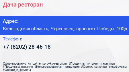 Дача, ресторан по адресу Вологодская область, Череповец, проспект Победы, 100д в дальнейшем Организация, размещена в следующих категориях: