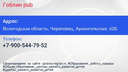Гоблин pub по адресу Вологодская область, Череповец, Архангельская, 62Б в дальнейшем Организация, размещена в следующих категориях: