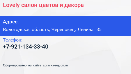 Lovely, салон цветов и декора по адресу Вологодская область, Череповец, Ленина, 35 в дальнейшем Организация, размещена в следующих категориях: