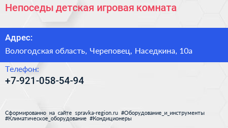 Непоседы, детская игровая комната по адресу Вологодская область, Череповец, Наседкина, 10а в дальнейшем Организация, размещена в следующих категориях: