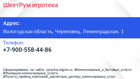 ШкетРум, игротека по адресу Вологодская область, Череповец, Ленинградская, 1 в дальнейшем Организация, размещена в следующих категориях: