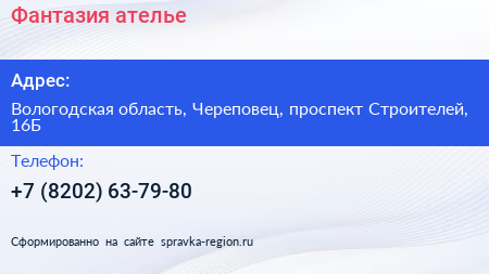 Фантазия, ателье по адресу Вологодская область, Череповец, проспект Строителей, 16Б в дальнейшем Организация, размещена в следующих категориях: