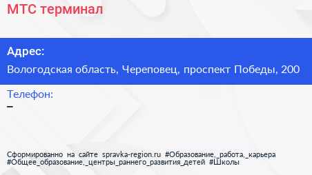 МТС, терминал по адресу Вологодская область, Череповец, проспект Победы, 200 в дальнейшем Организация, размещена в следующих категориях: