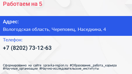 Работаем на 5 по адресу Вологодская область, Череповец, Наседкина, 4 в дальнейшем Организация, размещена в следующих категориях: