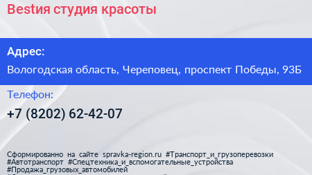 Bestия, студия красоты по адресу Вологодская область, Череповец, проспект Победы, 93Б в дальнейшем Организация, размещена в следующих категориях: