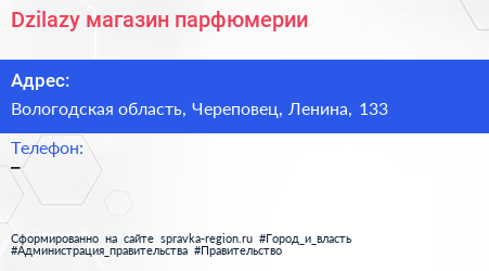 Dzilazy, магазин парфюмерии по адресу Вологодская область, Череповец, Ленина, 133 в дальнейшем Организация, размещена в следующих категориях: