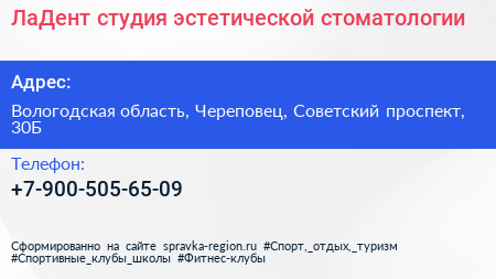 ЛаДент, студия эстетической стоматологии по адресу Вологодская область, Череповец, Советский проспект, 30Б в дальнейшем Организация, размещена в следующих категориях: