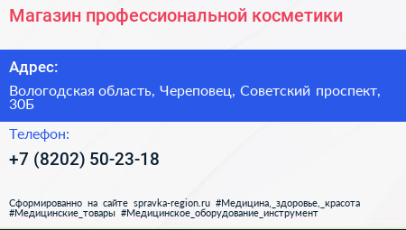 Магазин профессиональной косметики по адресу Вологодская область, Череповец, Советский проспект, 30Б в дальнейшем Организация, размещена в следующих категориях: