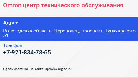Omron, центр технического обслуживания по адресу Вологодская область, Череповец, проспект Луначарского, 51 в дальнейшем Организация, размещена в следующих категориях:
