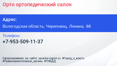 Орто, ортопедический салон по адресу Вологодская область, Череповец, Ленина, 88 в дальнейшем Организация, размещена в следующих категориях: