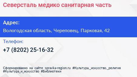 Северсталь, медико-санитарная часть по адресу Вологодская область, Череповец, Парковая, 42 в дальнейшем Организация, размещена в следующих категориях: