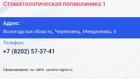Стоматологическая поликлиника №1 по адресу Вологодская область, Череповец, Менделеева, 6 в дальнейшем Организация, размещена в следующих категориях: