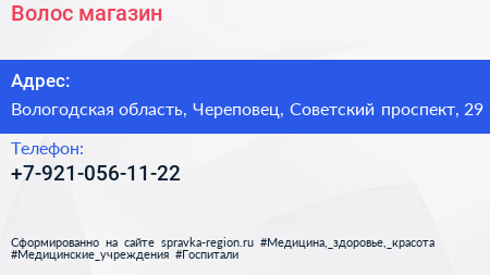 Волос, магазин по адресу Вологодская область, Череповец, Советский проспект, 29 в дальнейшем Организация, размещена в следующих категориях: