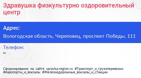 Здравушка, физкультурно-оздоровительный центр по адресу Вологодская область, Череповец, проспект Победы, 111 в дальнейшем Организация, размещена в следующих категориях: