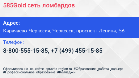 585Gold, сеть ломбардов по адресу Карачаево-Черкесия, Черкесск, проспект Ленина, 56 в дальнейшем Организация, размещена в следующих категориях: