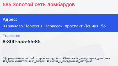 585*Золотой, сеть ломбардов по адресу Карачаево-Черкесия, Черкесск, проспект Ленина, 56 в дальнейшем Организация, размещена в следующих категориях: