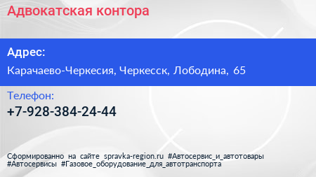 Адвокатская контора по адресу Карачаево-Черкесия, Черкесск, Лободина, 65 в дальнейшем Организация, размещена в следующих категориях: