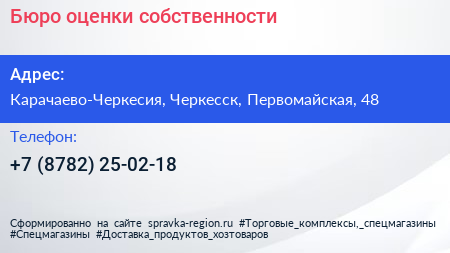 Бюро оценки собственности по адресу Карачаево-Черкесия, Черкесск, Первомайская, 48 в дальнейшем Организация, размещена в следующих категориях: