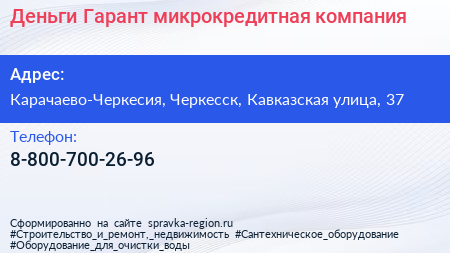 Деньги Гарант, микрокредитная компания по адресу Карачаево-Черкесия, Черкесск, Кавказская улица, 37 в дальнейшем Организация, размещена в следующих категориях: