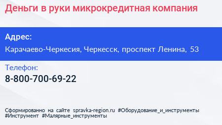 Деньги в руки, микрокредитная компания по адресу Карачаево-Черкесия, Черкесск, проспект Ленина, 53 в дальнейшем Организация, размещена в следующих категориях: