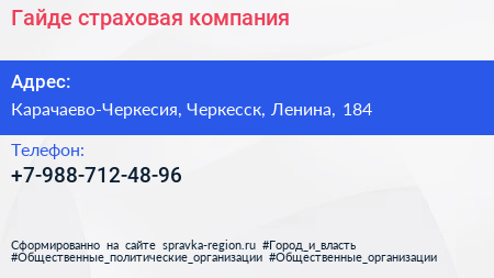 Гайде, страховая компания по адресу Карачаево-Черкесия, Черкесск, Ленина, 184 в дальнейшем Организация, размещена в следующих категориях: