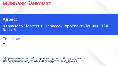 МИнБанк, банкомат по адресу Карачаево-Черкесия, Черкесск, проспект Ленина, 154 блок Б в дальнейшем Организация, размещена в следующих категориях: