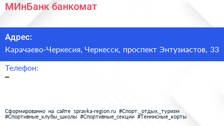 МИнБанк, банкомат по адресу Карачаево-Черкесия, Черкесск, проспект Энтузиастов, 33 в дальнейшем Организация, размещена в следующих категориях: