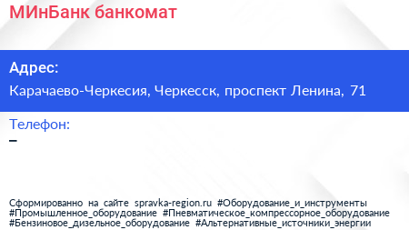 МИнБанк, банкомат по адресу Карачаево-Черкесия, Черкесск, проспект Ленина, 71 в дальнейшем Организация, размещена в следующих категориях: