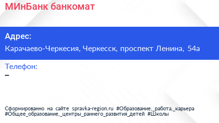 МИнБанк, банкомат по адресу Карачаево-Черкесия, Черкесск, проспект Ленина, 54а в дальнейшем Организация, размещена в следующих категориях: