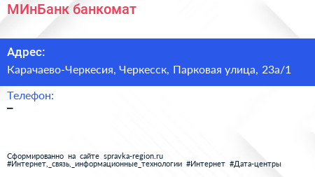 МИнБанк, банкомат по адресу Карачаево-Черкесия, Черкесск, Парковая улица, 23а/1 в дальнейшем Организация, размещена в следующих категориях: