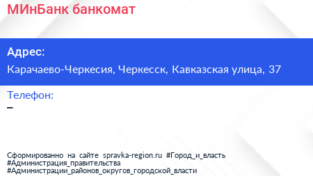МИнБанк, банкомат по адресу Карачаево-Черкесия, Черкесск, Кавказская улица, 37 в дальнейшем Организация, размещена в следующих категориях: