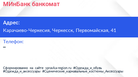 МИнБанк, банкомат по адресу Карачаево-Черкесия, Черкесск, Первомайская, 41 в дальнейшем Организация, размещена в следующих категориях: