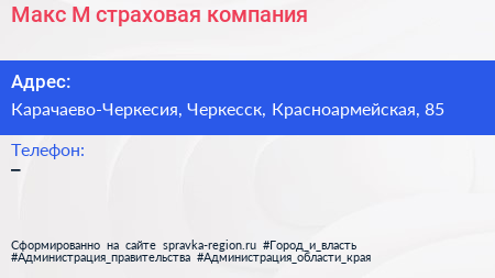 Макс М, страховая компания по адресу Карачаево-Черкесия, Черкесск, Красноармейская, 85 в дальнейшем Организация, размещена в следующих категориях: