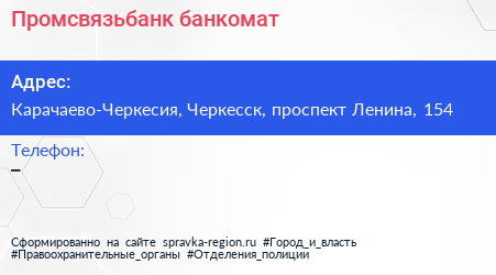 Промсвязьбанк, банкомат по адресу Карачаево-Черкесия, Черкесск, проспект Ленина, 154 в дальнейшем Организация, размещена в следующих категориях: