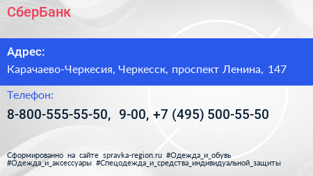 СберБанк по адресу Карачаево-Черкесия, Черкесск, проспект Ленина, 147 в дальнейшем Организация, размещена в следующих категориях: