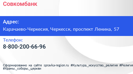 Совкомбанк по адресу Карачаево-Черкесия, Черкесск, проспект Ленина, 57 в дальнейшем Организация, размещена в следующих категориях: