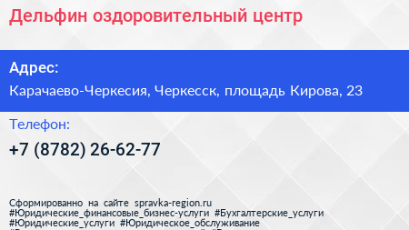 Дельфин, оздоровительный центр по адресу Карачаево-Черкесия, Черкесск, площадь Кирова, 23 в дальнейшем Организация, размещена в следующих категориях: