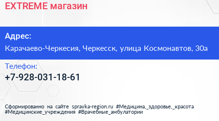 EXTREME, магазин по адресу Карачаево-Черкесия, Черкесск, улица Космонавтов, 30а в дальнейшем Организация, размещена в следующих категориях: