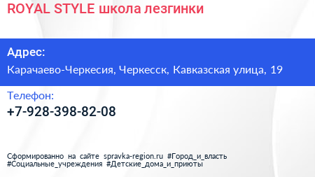 ROYAL-STYLE, школа лезгинки по адресу Карачаево-Черкесия, Черкесск, Кавказская улица, 19 в дальнейшем Организация, размещена в следующих категориях: