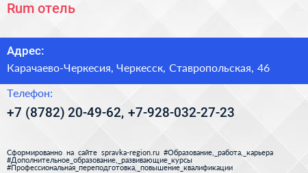 Rum, отель по адресу Карачаево-Черкесия, Черкесск, Ставропольская, 46 в дальнейшем Организация, размещена в следующих категориях: