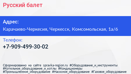 Русский балет по адресу Карачаево-Черкесия, Черкесск, Комсомольская, 1а/6 в дальнейшем Организация, размещена в следующих категориях: