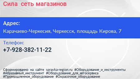 Сила+, сеть магазинов по адресу Карачаево-Черкесия, Черкесск, площадь Кирова, 7 в дальнейшем Организация, размещена в следующих категориях: