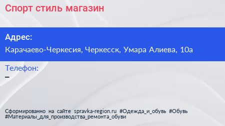 Спорт стиль, магазин по адресу Карачаево-Черкесия, Черкесск, Умара Алиева, 10а в дальнейшем Организация, размещена в следующих категориях: