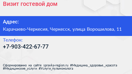Визит, гостевой дом по адресу Карачаево-Черкесия, Черкесск, улица Ворошилова, 11 в дальнейшем Организация, размещена в следующих категориях: