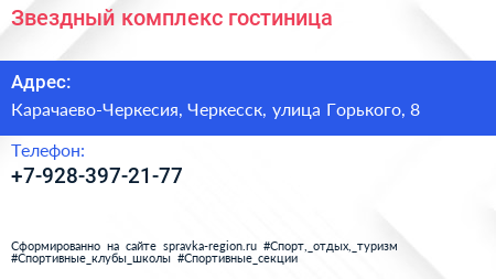 Звездный комплекс, гостиница по адресу Карачаево-Черкесия, Черкесск, улица Горького, 8 в дальнейшем Организация, размещена в следующих категориях: