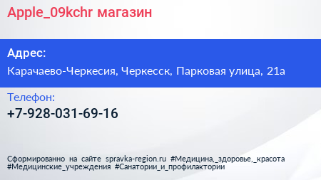 Apple_09kchr, магазин по адресу Карачаево-Черкесия, Черкесск, Парковая улица, 21а в дальнейшем Организация, размещена в следующих категориях: