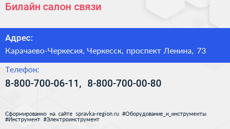 Билайн, салон связи по адресу Карачаево-Черкесия, Черкесск, проспект Ленина, 73 в дальнейшем Организация, размещена в следующих категориях: