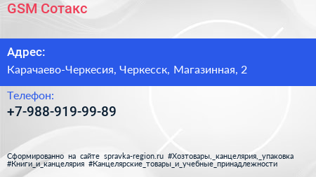 GSM Сотакс по адресу Карачаево-Черкесия, Черкесск, Магазинная, 2 в дальнейшем Организация, размещена в следующих категориях: