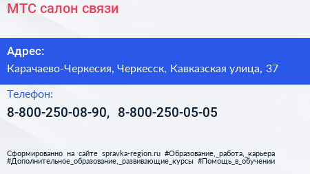 МТС, салон связи по адресу Карачаево-Черкесия, Черкесск, Кавказская улица, 37 в дальнейшем Организация, размещена в следующих категориях: